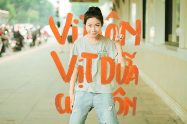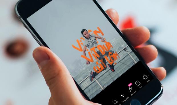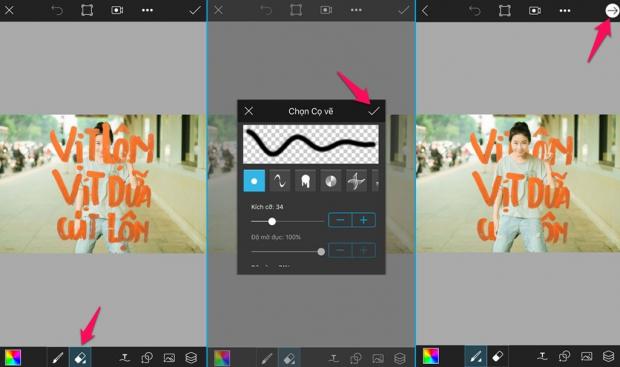 Bước 4: Dùng công cụ xóa/tẩy đi phần chữ che khuất khuôn mặt hoặc tùy chọn theo sự sáng tạo của bạn. Sau đó nhấn vào biểu tượng mũi tên ở góc trên bên phải màn hình để lưu và chia sẻ hình ảnh lên mạng xã hội hoặc gửi qua tin nhắn