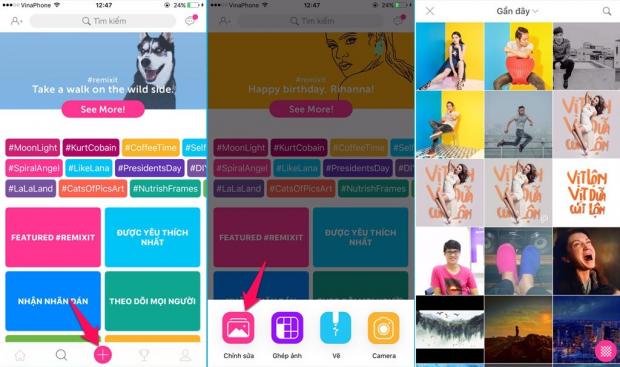Bước 1: Mở ứng dụng Picsart > nhấn vào biểu tượng dấu '+' > chọn mục 'Chỉnh sửa' và tích vào bức ảnh đôi mà bạn mong muốn