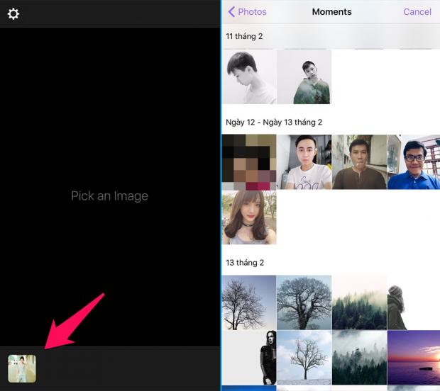 Sau khi thực hiện xong, bạn nhấn nút vào những nút tròn phía dưới đề tùy chỉnh độ mờ, nhấn mũi tên ở góc phải màn hình để lưu hoặc gửi ảnh qua Facebook, tin nhắn, email v.v...