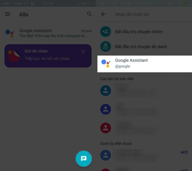 Sau khi tải về, mọi người mở ứng dụng lên và chọn vào icon dưới góc phải. Tại đây, các bạn có thể tạo một cuộc trò chuyện với bạn bè, nhóm, trò chuyện ẩn danh và đặc biệt là Google Assistant.