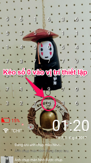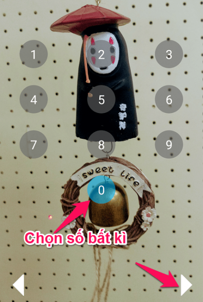 Thử khóa màn hình, sau đó mở lại. Để mở khóa bạn cũng di chuyển dãy số sao cho con số bạn lựa chọn khớp đúng vào vị trí bạn thiết lập ở trên.