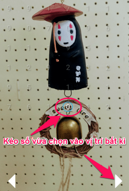 Bây giờ bạn hãy chọn 1 vị trí bất kì trên tấm ảnh, ghi nhớ nó. Sau đó dùng tay di chuyển dãy số sao cho số 0 khớp vào vị trí bạn đã chọn.
