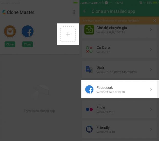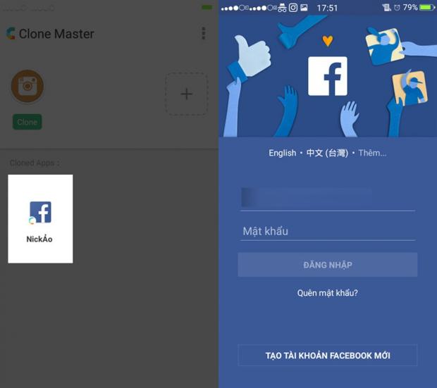 Clone Master là một ứng dụng rất tốt để giải quyết vấn đề cho bạn. App sẽ tạo ra một bản sao của từng ứng dụng như Facebook, Instagram, Zalo,... tuỳ theo người dùng lựa chọn, để sử dụng nick thứ 2 song song mà không cần đăng xuất ra. Mọi người có thể tải về Clone Master trên CH Play.