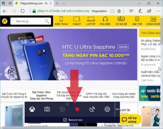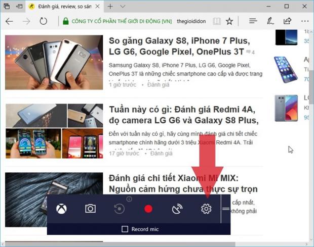 Bước 2: Giao diện công cụ Game Bar hện lên, nếu muốn quay nhanh màn hình ứng dụng bạn có thể nhấp vào biểu tượng ghi hình màu đỏ. Bên cạnh đó bạn cũng có thể tích chọn vào 'Record mic' để ghi cả tiếng lẫn hình.