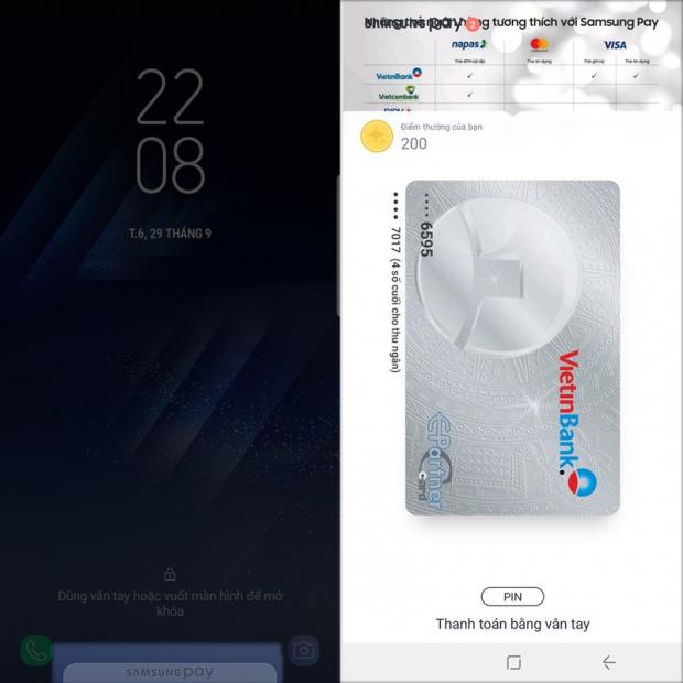 Bước 7: Vậy là xong rồi đó, khi sử dụng, bạn chỉ cần vuốt từ dưới lên từ màn hình khoá để mở Samsung Pay và đưa vào máy quét.