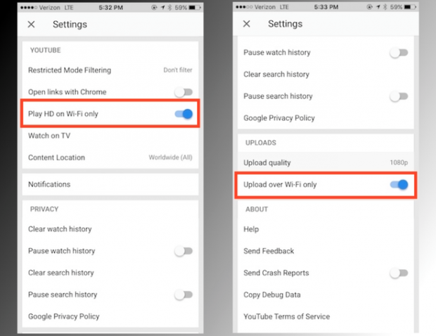Nếu hay chia sẻ video lên YouTube, cũng nên tuỳ chọn chỉ tải lênnếu như có kết nối Wi-Fi, trong trường hợp nội dung có thời lượng dài và được quay ở chất lượng cao như Full HD hay 4K.