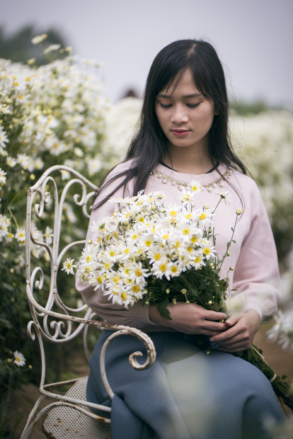 Cúc trắng tinh khôi bên em bẽn lẽn. Tuổi thanh xuân nào còn vương vấn hơi thở của thời gian?