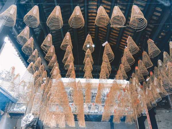 Chùa được treo rất nhiều nhang khoanh ở phía trên, mình không rõ do chùa hay do người hành hương thắp lên, và đây cũng là điểm đặc trưng ở địa điểm này.