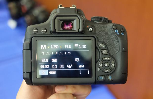 Do không có màn hình phụ, 750D chỉ hiển thị thông số chụp qua màn hình phía sau.