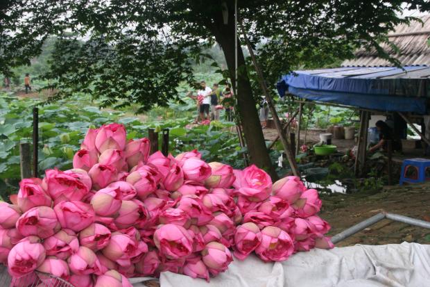 Hoa còn nhú nụ thì được phân loại để bán cho những người muốn chơi sen cắm lọ. Những bông đã hé nở thì chuyển cho những người chuyên làm nghề ướp chè sen. Chè sen là một loại chè đặc biệt, nó có giá bán khá cao nhưng vẫn luôn khan hiếm và không đủ cung cầu