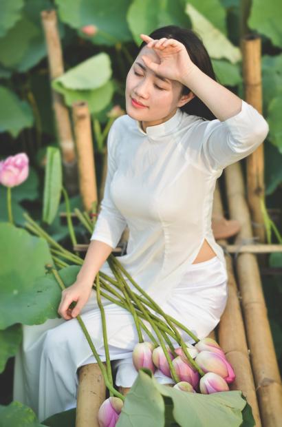 Giữa đầm sen ngát hương, em như trở về với cội nguồn sâu thẳm: Trong ngần tinh khôi, không chút ưu tư, muộn phiền…