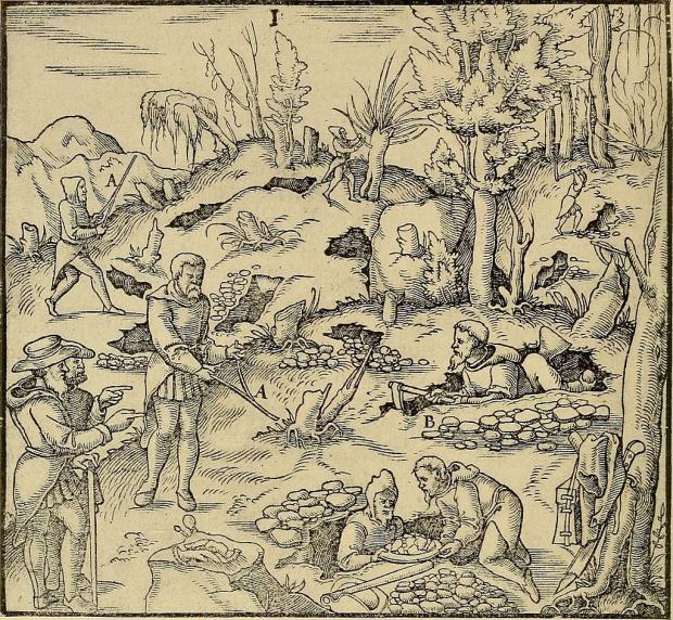 Hình ảnh một ngừơi tìm mạch nước trong bức tranh “De re metallica”, Agricola 1580. (Ảnh: Epoch Times France)