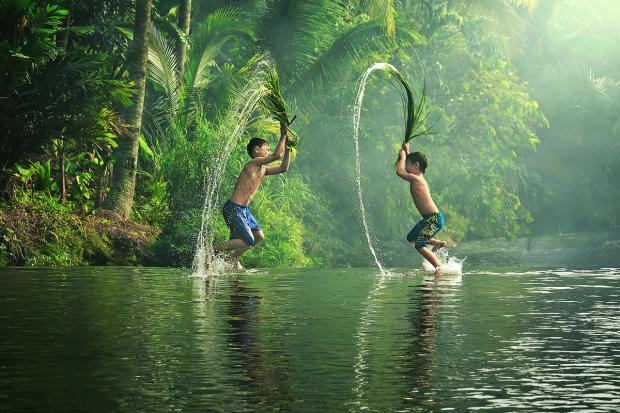 Quần áo chưa kịp khô chúng lại thay nhau nhảy ỳ ùm. Chúng đuổi nhau, tranh nhau chạy trên thân Cừa, có đứa tìm đường tắt, bám vào những rễ Cừa đang treo lủng lẵng để leo lên. Tôi vốn nhát sợ, chỉ ôm lấy những rễ cây đã cắm sâu vào lòng đất để từ từ leo lên. Nhưng ít khi lên được. Vừa sắp đụng thân dừa thì đã bị mấy đứa ở trên hất ùm xuống nước…