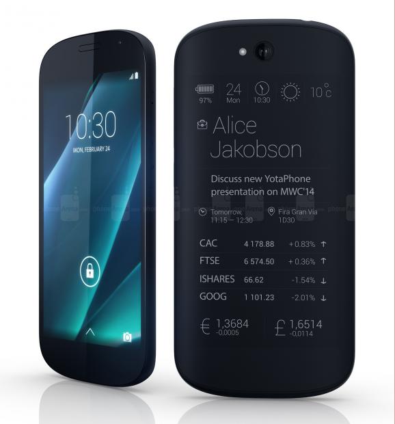 YotaPhone 2 được trang bị màn hình chính 5 inch cùng màn hình phụ e-ink đen trắng 4,7 inch độ phân giải 540 x 960 pixel hỗ trợ cảm ứng. Trong trường hợp máy sắp hết pin, bạn hoàn toàn có thể sử dụng màn hình thức 2 để thay cho màn hình chính. Nếu bạn là người yêu thích, màn hình e-ink sẽ là lựa chọn tốt hơn cả bởi nó sẽ không gây ảnh hưởng đến mắt của bạn.