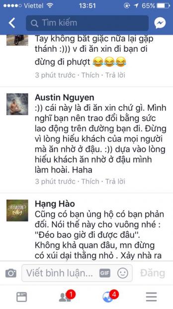 Hay 1 bài viết trong group phượt của 1 bạn nam tên S 19 tuổi, quê Bình Định. Cậu bạn dự định ngày 14/7 sẽ bắt đầu chuyến đi bộ xuyên Việt với '2 bàn tay trắng' . Mục tiêu đi là để hiểu rõ hơn văn hóa Việt và mong mọi người giúp đỡ trng suôt hành trình. Khi được hỏi cụ thể kế hoạch chuyến đi cậu bạn trả lời ' Đi tới tỉnh nào mình sẽ xin ở lại làm việc tại nhà dân 2,3 ngày để lấy kinh phí sau đó tiếp tục hành trình, đến những làng trẻ SOS giúp đỡ các em... MÌnh có giấy tờ tùy thân đầy đủ chắc chắn sẽ xin được việc....'