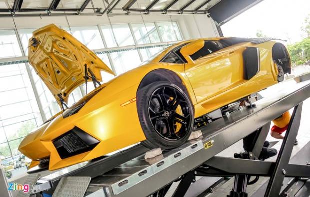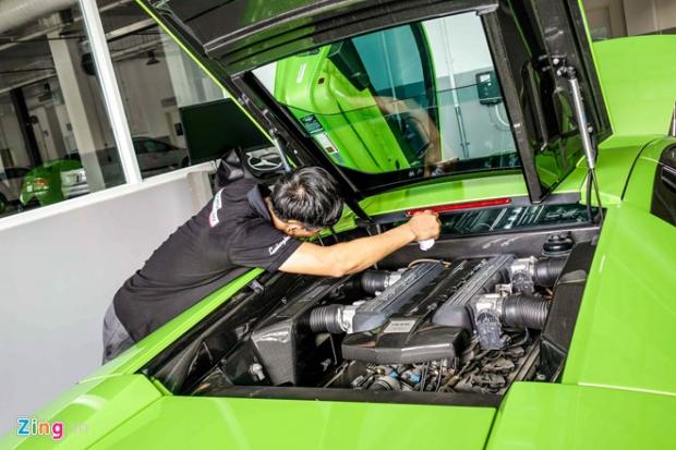 Ngày 4/6, tại TP HCM, đại lý Lamborghini tổ chức kiểm tra, chăm sóc siêu xe cho những chiếc xe đang lưu hành khu vực phía Nam.