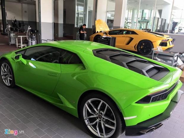 Lamborghini Huracan màu xanh nõn chuối cũng có mặt để kiểm tra. Hiện tại Việt Nam có 3 chiếc Huracan màu này trong tổng số trên 10 chiếc. Hầu hết xe được nhập khẩu bởi các đại lý ngoài và thuộc hàng đã qua sử dụng.