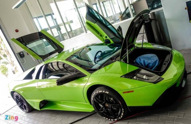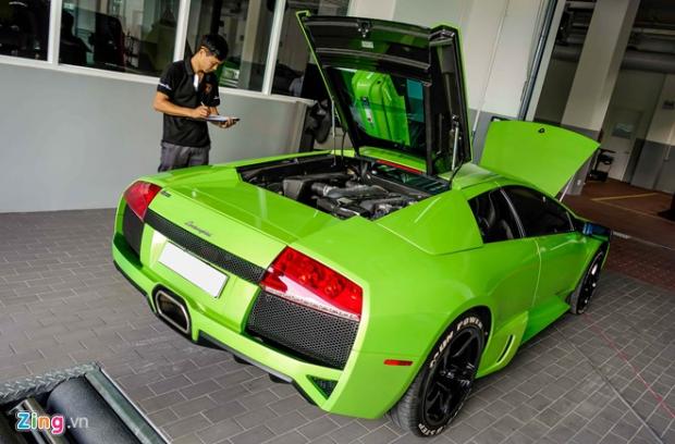 Lamborghini Mucielago LP640 màu xanh cốm độc nhất Việt Nam cũng được đem tới kiểm tra.