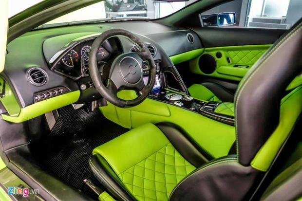 Siêu xe này có tuổi đời trên 10 năm nên nội thất nhiều chi tiết đã bạc màu. Không chỉ sơn ngoại thất, nhiều chi tiết bên trong cũng sơn lại thành màu xanh.
