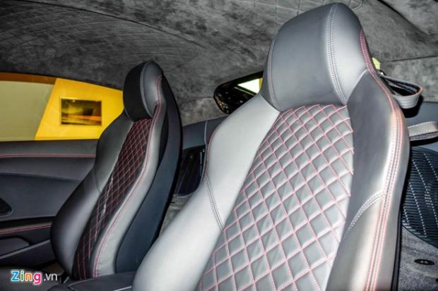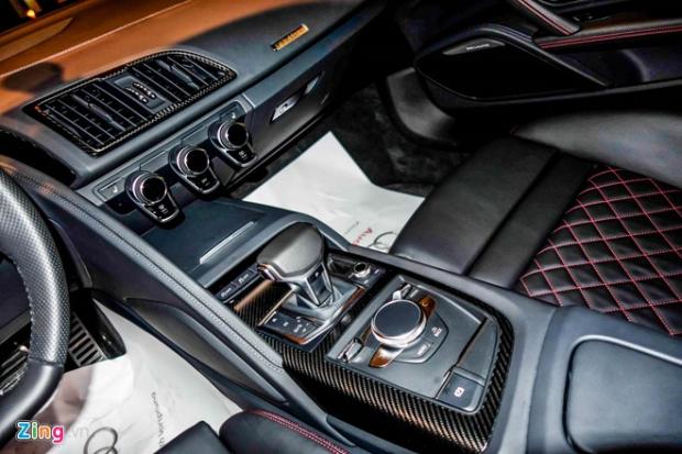 Nội thất vẫn giữ phong cách truyền thống của Audi với da thật và những đường chỉ khâu tay. Sợi carbon bao phủ bệ trung tâm, xung quanh khe gió điều hòa.