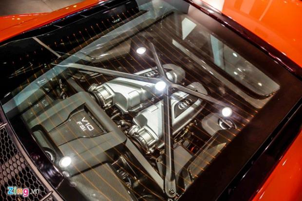 Giữa tháng 4 năm nay, siêu xe Audi R8 V10 Plus đầu tiên được nhập khẩu chính hãng về Việt Nam. So với những chiếc Audi R8 được nhập khẩu trước đây, phiên bản này sử dụng động cơ mạnh nhất, lên tới 602 mã lực, tương đương với động cơ trên siêu xe Lamborghini Huracan.