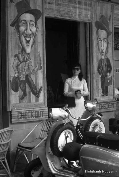 Thiếu nữ Sài Thành trong bộ áo dài dân tộc và chiếc Cub