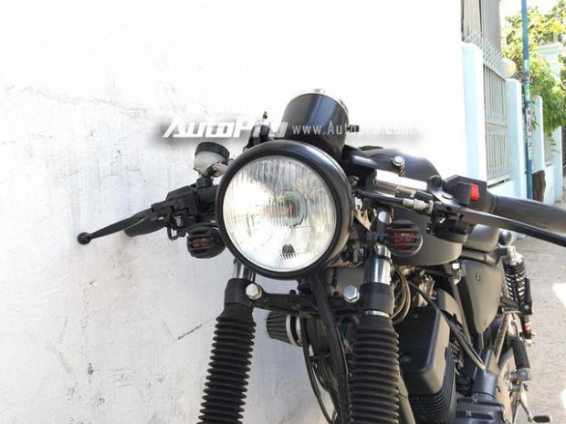 Ở phần đầu xe, cụm tay lái cao trên những chiếc Virago XV125 được loại bỏ, thay vào đó là ghi đông ngang và được đặt thấp, từ đó, giúp các chi tiết của xe như cụm đồng hồ tốc độ và đèn pha tròn cổ điển trở thành điểm nhấn trên mẫu xế độ. Thậm chí hai đèn xi-nhan trước cũng được thợ Sài thành trang trí thêm đồ chơi bắt mắt.