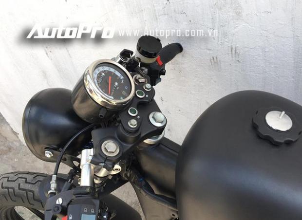 Phần bình xăng giọt nước nguyên bản cũng được gò lại thủ công và khoác áo mới màu đen nhám bí ẩn.