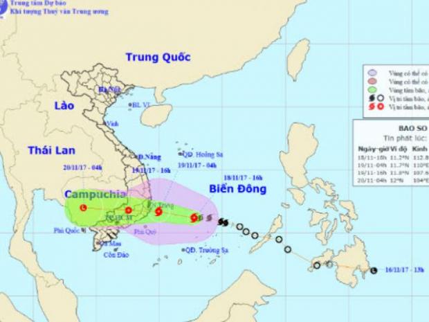 Đến 7 giờ sáng mai (19/11), vị trí tâm bão ở ngay trên bờ biển các tỉnh Khánh Hòa - Ninh Thuận - Bình Thuận. Sức gió mạnh nhất ở vùng gần tâm bão mạnh cấp 8-9 (60-90km/giờ), giật cấp 12. Vùng gió mạnh do bão trên cấp 6, gió giật mạnh trên cấp 9 có bán kính khoảng 180km về phía Bắc, 120km về phía Nam tính từ vùng tâm bão có thể đi qua.