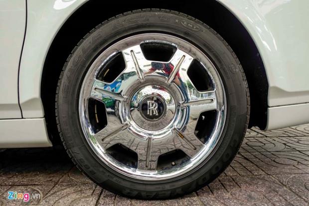 Vành xe mạ chrome sáng bóng với logo Rolls-Royce giữa cốt bánh. Phantom cũng được trang bị lốp run-flat giúp xe có thể chạy khi không may bị thủng bánh mà không làm hỏng bộ vành đắt tiền phía trong.