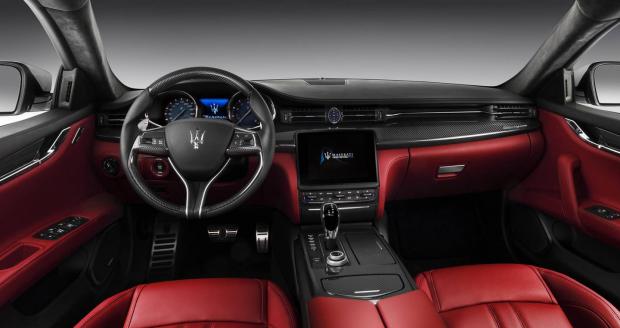 Tiến vào bên trong, tất cả các phiên bản của Maserati Quattroporte 2017 đều được trang bị màn hình giải trí đa phương tiện kích thước 8,4 inch với độ phân giải cao. Nội thất của xe được bọc da cao cấp kết hợp cùng chất liệu carbon siêu nhẹ trên phiên bản GranSport hoặc ốp gỗ tinh tế trên phiên bản tiêu chuẩn và GranLusso. Riêng biến thể Granlusso sẽ có thêm gói tùy chọn Ermenegildo Zegna với chất liệu vải lụa cho ghế ngồi, lót cửa, tấm chắn nắng và trần xe.