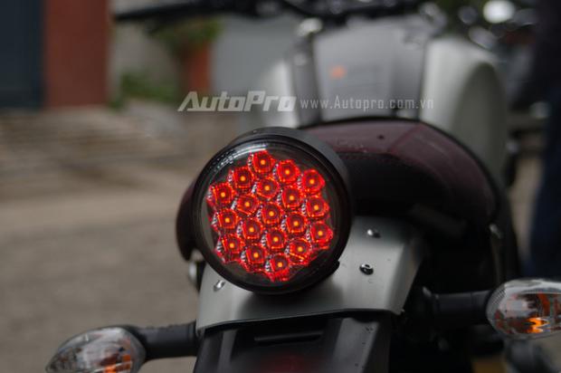 Điểm nhấn trong phong cách thiết kế của Yamaha XSR900 là cụm đèn hậu đầy ma mị với 19 bóng đèn LED nhỏ được sắp đặt gọn gàng, các bóng này mang màu đỏ.