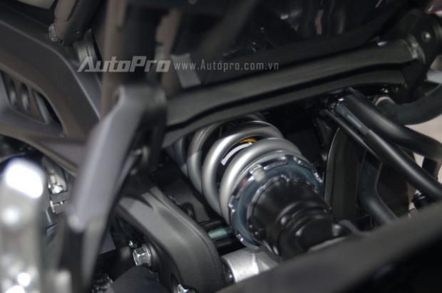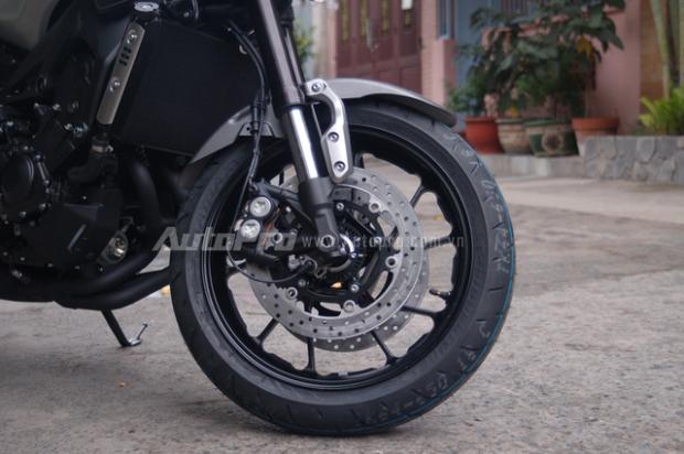 Yamaha XSR900 sử dụng phuộc trước hành trình ngược của USD có đường kính 137 mm, đi kèm cặp phanh đĩa cỡ lớn 298 mm.