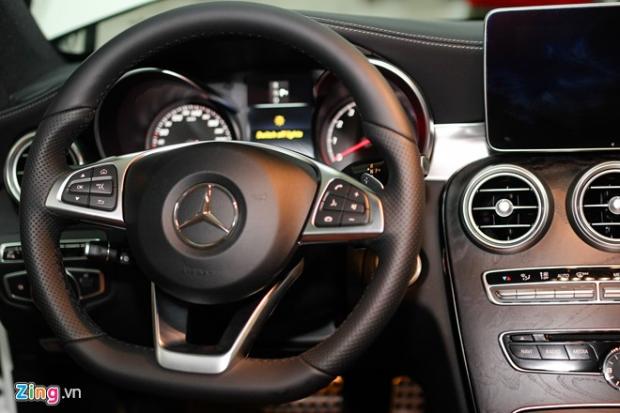 Vô lăng 3 chấu bọc da, tích hợp nhiều nút điều khiển. Phía sau có lẫy chuyển số. C300 Coupe hỗ trợ chế độ ra lệnh bằng giọng nói, đàm thoại rảnh tay... Bên cạnh đó, trên vô lăng cũng tích hợp nút bấm thiết lập chế độ cruise control.