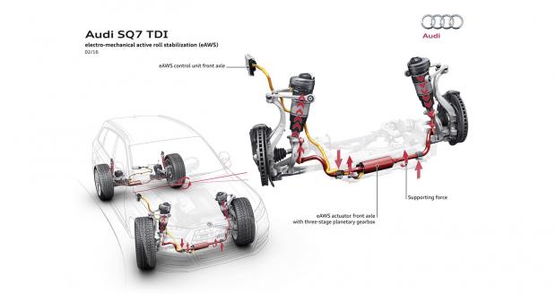 Ngoài ra, động cơ diesel V6 cũng được hãng xe này trang bị hệ thống Valvelift System (thay đổi biên độ đóng mở van xu-pap để thay đổi lượng khí nạp vào). Việc áp dụng hệ thống điện 48V cũng sẽ cho phép sử dụng các thanh lăn chủ động trong hệ thống treo, một công nghệ cũng được ứng dụng trên chiếc SQ7.