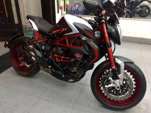 Hiện chưa rõ mức giá dành cho siêu mô tô hàng hiếm tại thị trường Việt Nam, trong đó mức giá xuất xưởng dành cho mẫu xe này vào khoảng 35.000 USD. Được biết chiếc MV Agusta Dragster RR phiên bản Lewis Hamilton này do một biker đến từ Vũng Tàu đặt hàng. Đây cũng là chiếc xe độc nhất Việt Nam tính đến thời điểm này. Ảnh: Nguyễn Đức.