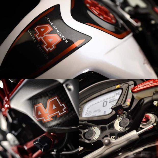 Đây là phiên bản đặc biệt của mẫu xe Agusta Dragster RR với LH là tên viết tắt của Lewis Hamilton, còn số 44 là số thứ tự xe đua mà tay đua F1 nổi tiếng sử dụng. Con số này xuất hiện hai bên sườn, bình xăng và chìa khóa của xe.