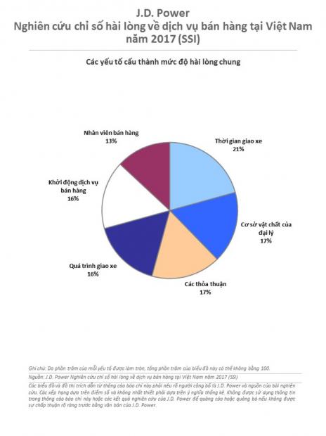 - Chỉ số hài lòng tổng thể về dịch vụ bán hàng giảm: Chỉ số hài lòng tổng thể về dịch vụ bán hàng và quá trình giao xe giảm còn 755 điểm (trên thang điểm 1.000) năm 2017, giảm so với 793 điểm năm 2016.