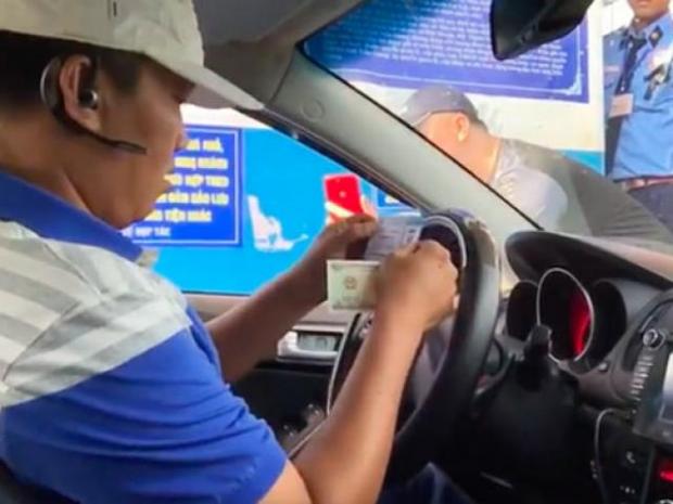 Nhân viên vào cabin để tiến hành thu phí đối với tài xế