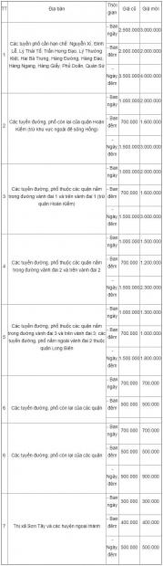 Theo UBND TP, mức giá trông giữ xe mới sẽ tiệm cận với giá thực tế mà đa số thị trường chấp nhận (cao hơn tối đa là 2 lần mức đang quy định) và mức giá cao nhất tại các tuyến phố thuộc khu vực lõi cao nhất, trải rộng ra đến các tuyến khác của quận Hoàn Kiếm, khu vực vành đai 1, vành đai 2, vành đai 3 có mức giá giảm dần. Mức giá dịch vụ trông giữ ngoài khu vực vành đai 3 giữ nguyên so với mức đang thực hiện.