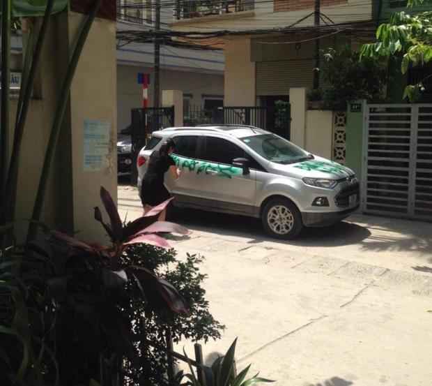 Từ những hình ảnh chụp lại này, chúng ta có thể nhận thấy, chiếc EcoSport đã đỗ chắn hết lối đi của một gia đình. Người phụ nữ được cho là chủ nhà, vì quá bực tức với việc này đã mang bình phun sơn vẽ chữ màu xanh lên nắp ca-pô và thân xe.