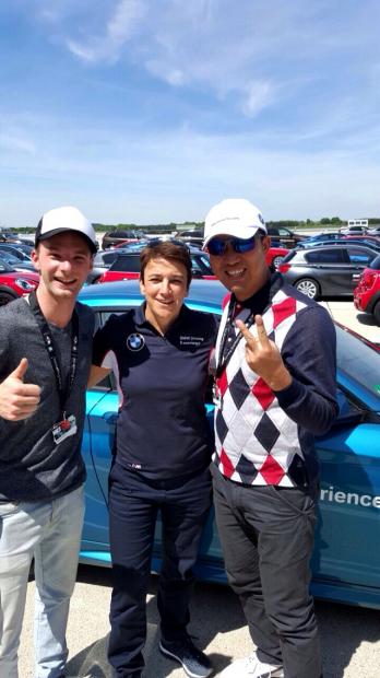 Từ phải sang, anh Lê Anh và huấn luyện viên trưởng Claudia Hurtgen tại BMW Driving Experience.