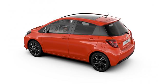 Toyota Yaris Orange Edition được ra mắt thị trường Anh với ngoại thất được sơn màu cam kết hợp với bộ mâm màu bạc và đen mờ, tương phản với các chi tiết bên trong nội thất màu đen của xe.