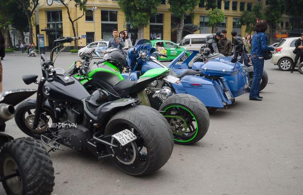 Ngoài ra còn có những chiếc xe phân khối lớn độc đáo như chiếc Harley-Davidson độ dáng sidecar của biker Đức Tào Phớ.