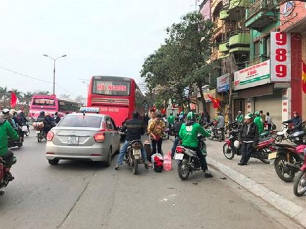 Nhiều nhà xe tranh thủ trả khách trên đường Giải Phóng bất chấp cảnh ùn tắc