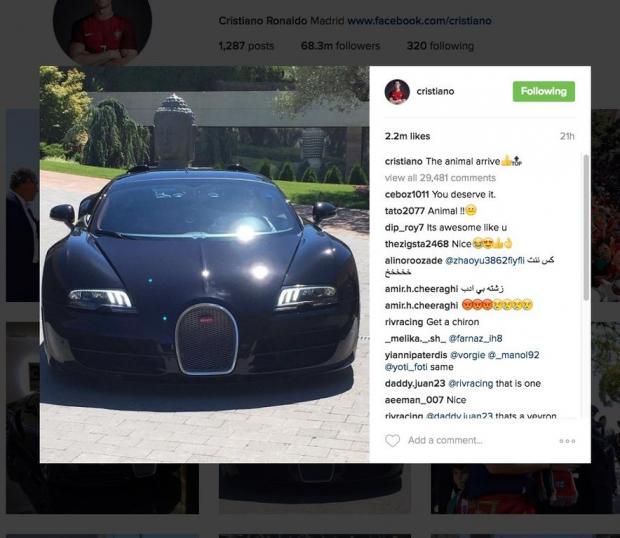 Mặc dù trận chung kết với Pháp đã để lại cho anh một chấn thương đầu gối nghiêm trọng, danh thủ người Bồ Đào Nha vẫn cảm thấy thoải mái vì đội mình đã vô địch. Sở dĩ có thể khẳng định anh cảm thấy “thoải mái” là vì mới đây Ronaldo đã mua một chiếc Bugatti Veyron 16.4 Grand Sport Vitesse với giá 1,9 triệu USD (42 tỷ 787 triệu VNĐ). Và tất nhiên, anh đã khoe ngay xế cưng mới của mình trên Instagram.