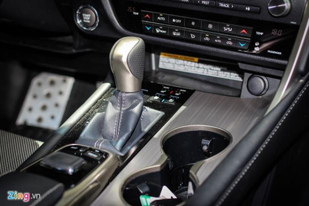 Khu vực cần số tích hợp nhiều nút bấm cho các chức năng. Cần điều chỉnh hệ thống thông tin-giải trí, núm chọn chế độ lái được bố trí ngay cạnh. Ngoài ra, RX350 F-Sport 2016 cũng trang bị công nghệ sạc điện thoại không dây.