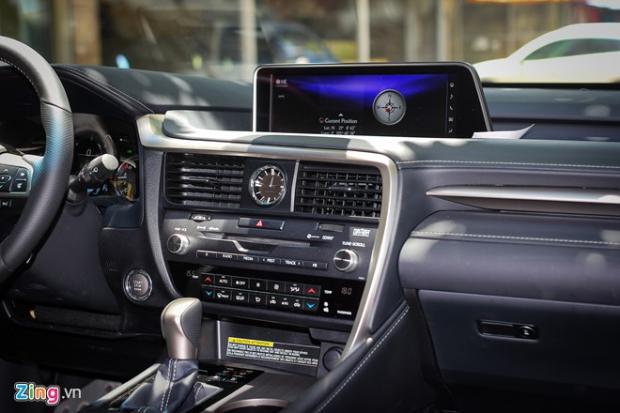 Không gian nội thất của Lexus RX350 F-Sport 2016 thiết kế sang trọng với chất liệu da và mạ kim loại, loại bớt nhiều chi tiết ốp gỗ như trên phiên bản tiêu chuẩn. Trong khi đó, các hệ thống giải trí và an toàn không thay đổi. Màn hình hiển thị kích thước lớn đặt đứng cố định trên bảng tap lô.