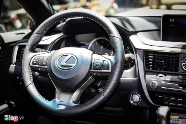 Vô lăng 3 chấu bọc da, không còn ốp gỗ và gắn lô gô phiên bản F-Sport. Phía sau vô lăng được trang bị lẫy chuyển số. RX350 F-Sport 2016 vẫn được trang bị hệ thống âm thanh Mark Levinson cao cấp, với đầu đủ các kết nối thống dụng.