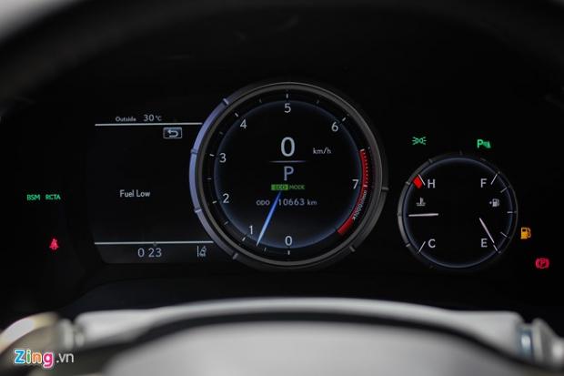 Màn hình hiển thị sau vô lăng của RX350 F-Sport thiết kế khác với phiên bản tiêu chuẩn. Đây là phong cách lấy cảm hứng từ siêu xe Lexus LF-A đã dừng sản xuất.